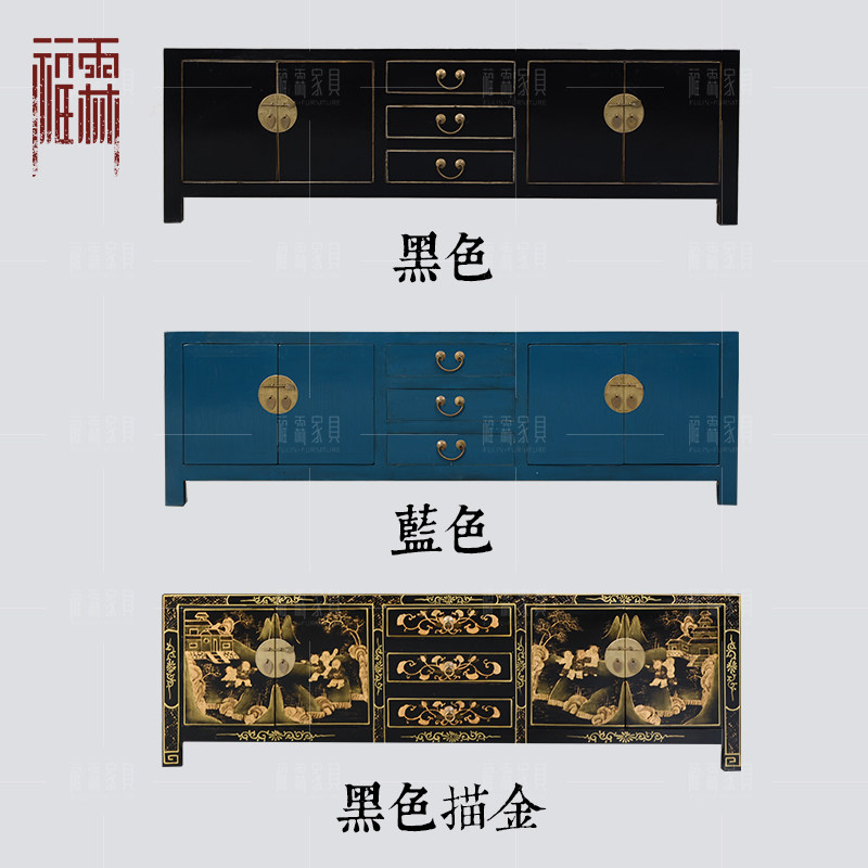 Modern Chinese antique made old blue four doors three tape TV cabinet locker display cabinet locker