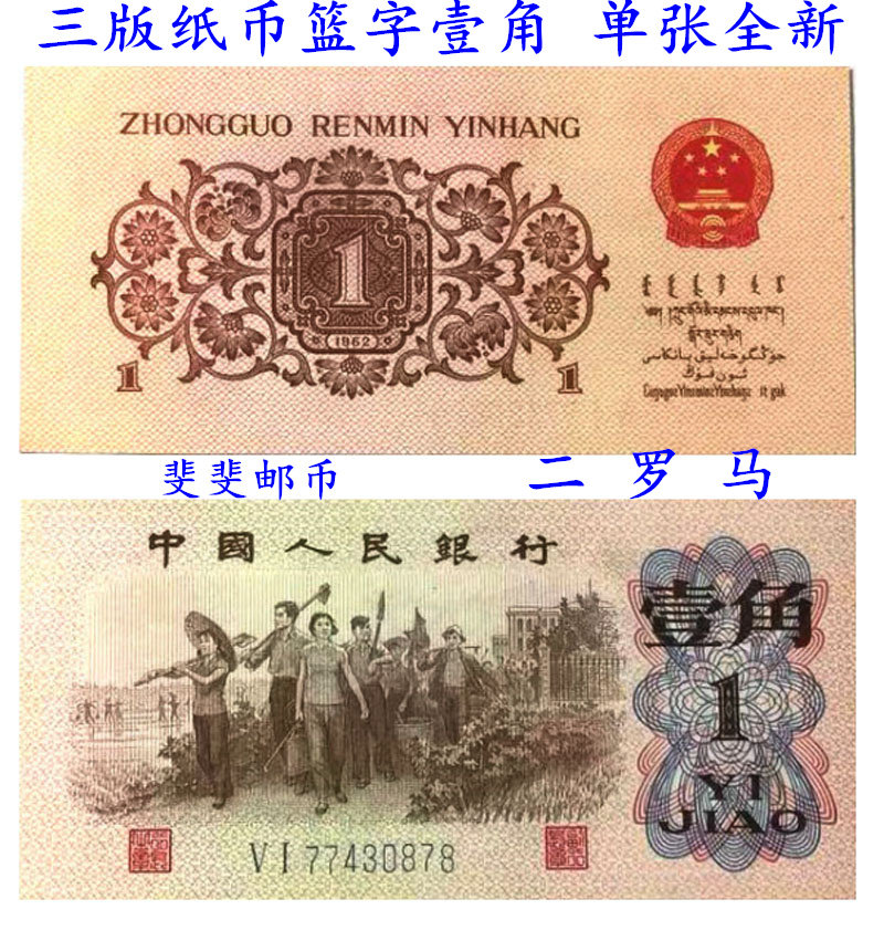 Third set of RMB Blue Word 2 Rome corner 1 corner One corner sheet New banknote True coin