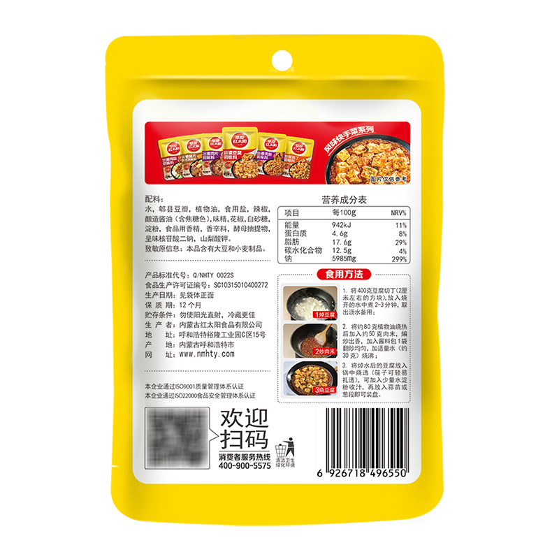 Prairie Red Sun Hemp tofu seasoning 100g Sichuan slightly spicy and spicy seasoned with spicy sauce seasoned with vegetable seasoning-Taobao