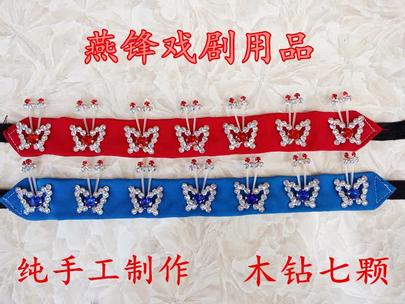 New drama head face Beijing opera head face colorful rhinestone wood drill bubble strip headdress Peking opera bubble strip rhinestone butterfly bubble strip