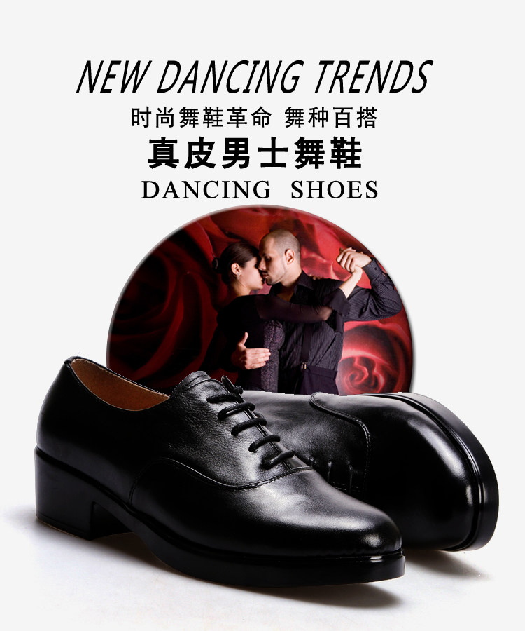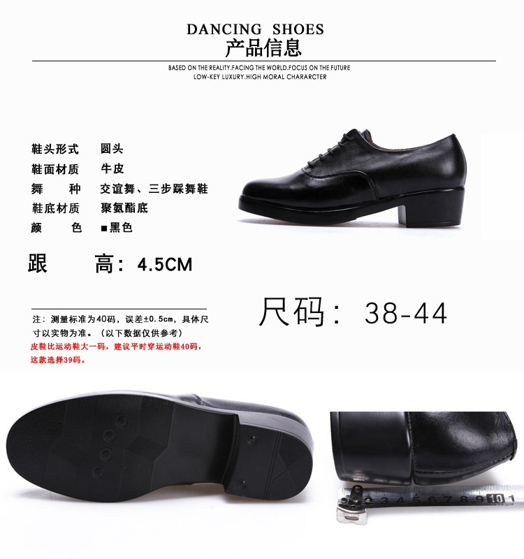 Modern Dance Shoes Cow Leather Outdoor Black Square Dance Shoes Thick Bottom Genuine Leather Men Morden Dance Shoes Three-step Dance Shoes