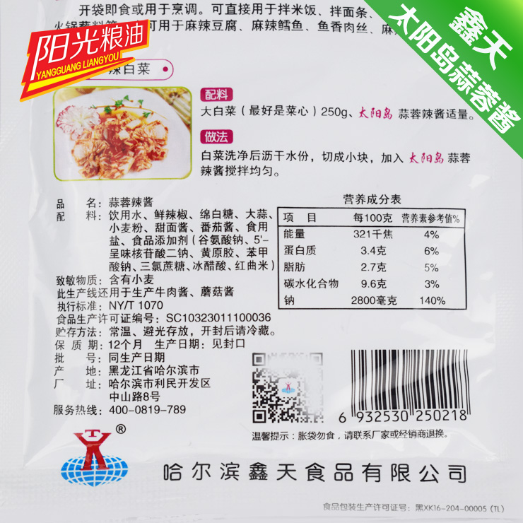 (Sunshine Grain oil) Sun Island Garlic Sauce Spicy Jam Spicy sauce mixed with barbecue sauce The whole box Multi-Province 100g