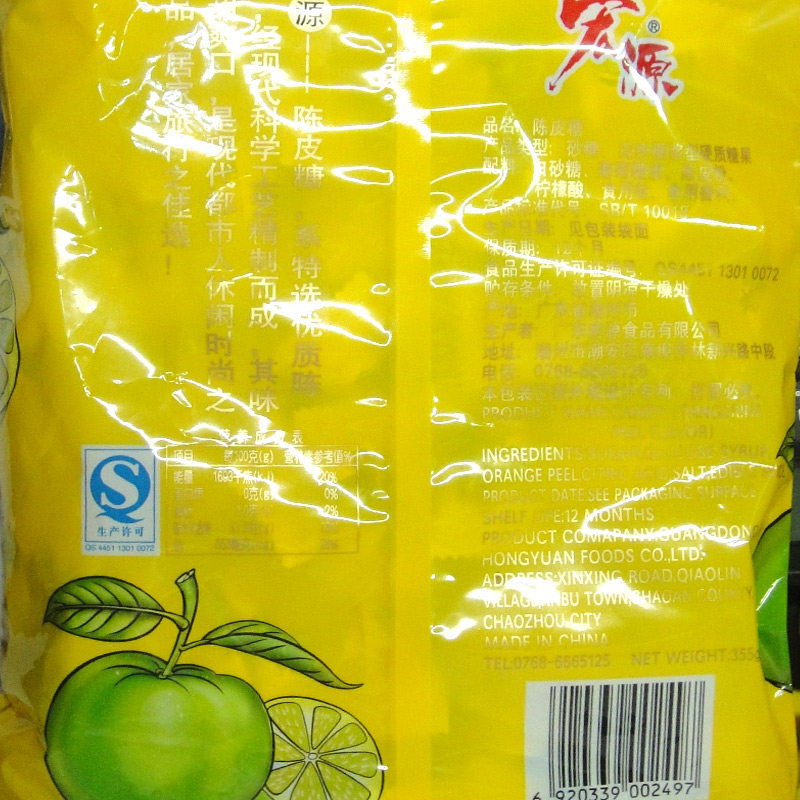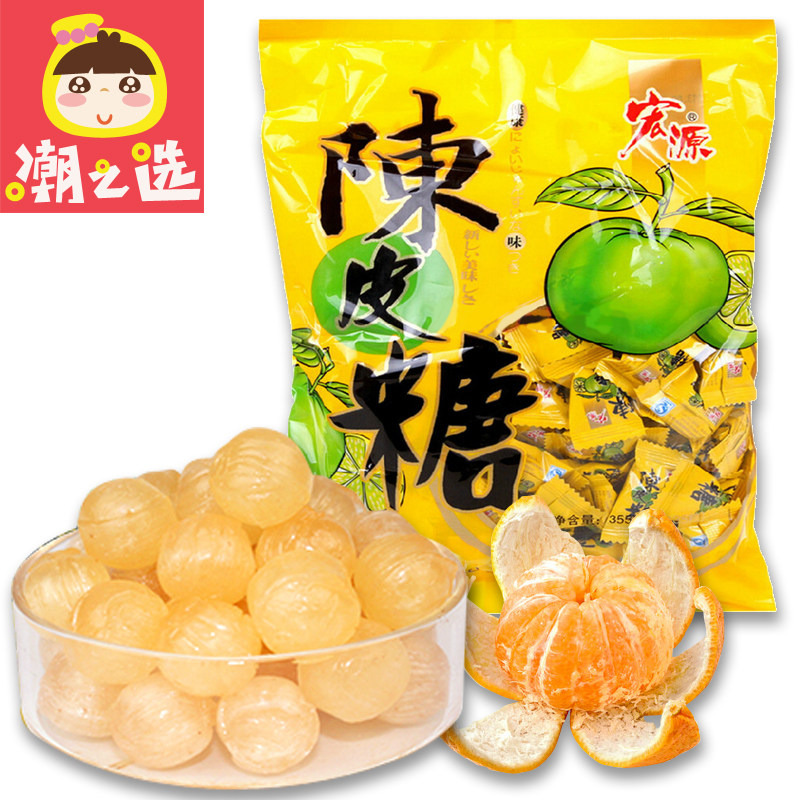 Hongyuan Tangerine peel sugar 355g bag Tangerine peel hard candy Wedding candy Wedding candy Fruit flavor nostalgic snacks