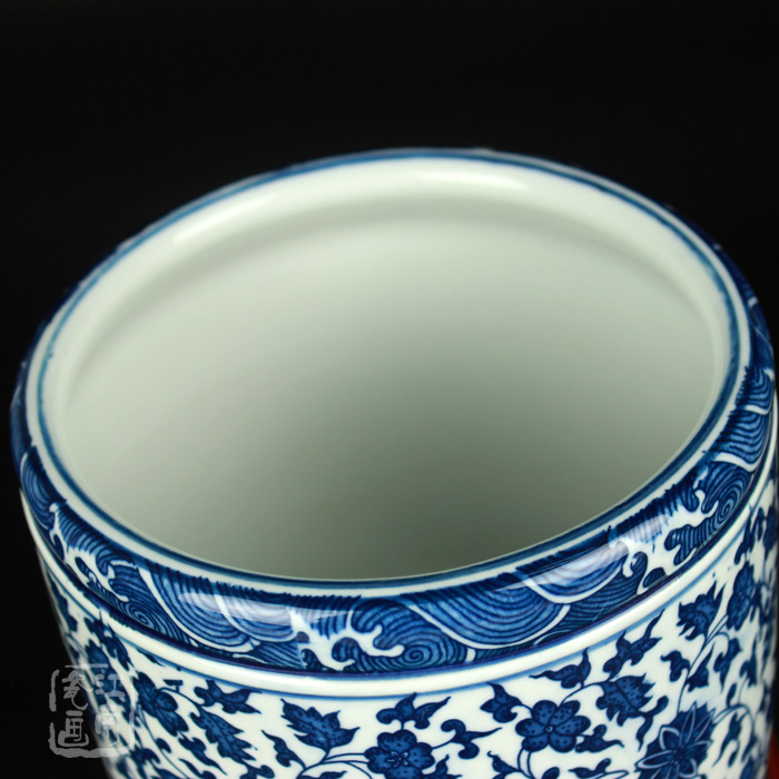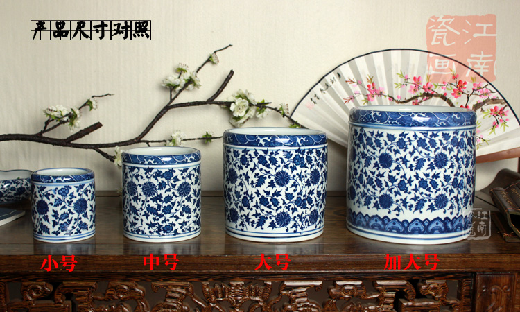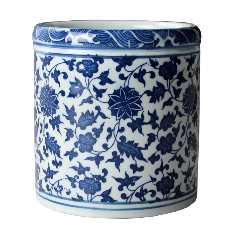 Imitation ancient porcelain green flower porcelain pen holder large number brush pen holder pen holder calligraphy and painting cylinder swing piece business gift pen holder set to do