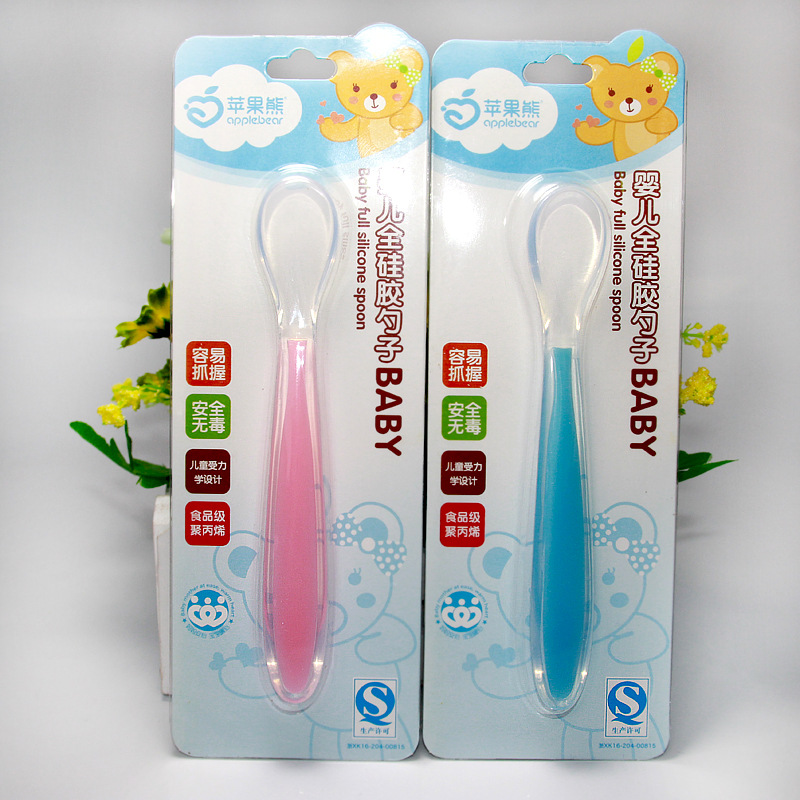 Half silicone gel soft head suit Soup spoon then gripping the soft head baby feeding spoon soft handle full silicone spoon for 0-36 months