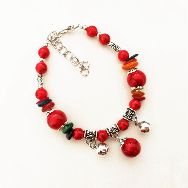 Yunnan Characteristics Bell Ringer Hand Strings Ethnic Wind Handmade Ornaments Retro Ben Life Red Pine Stone Handmade Female QSL023