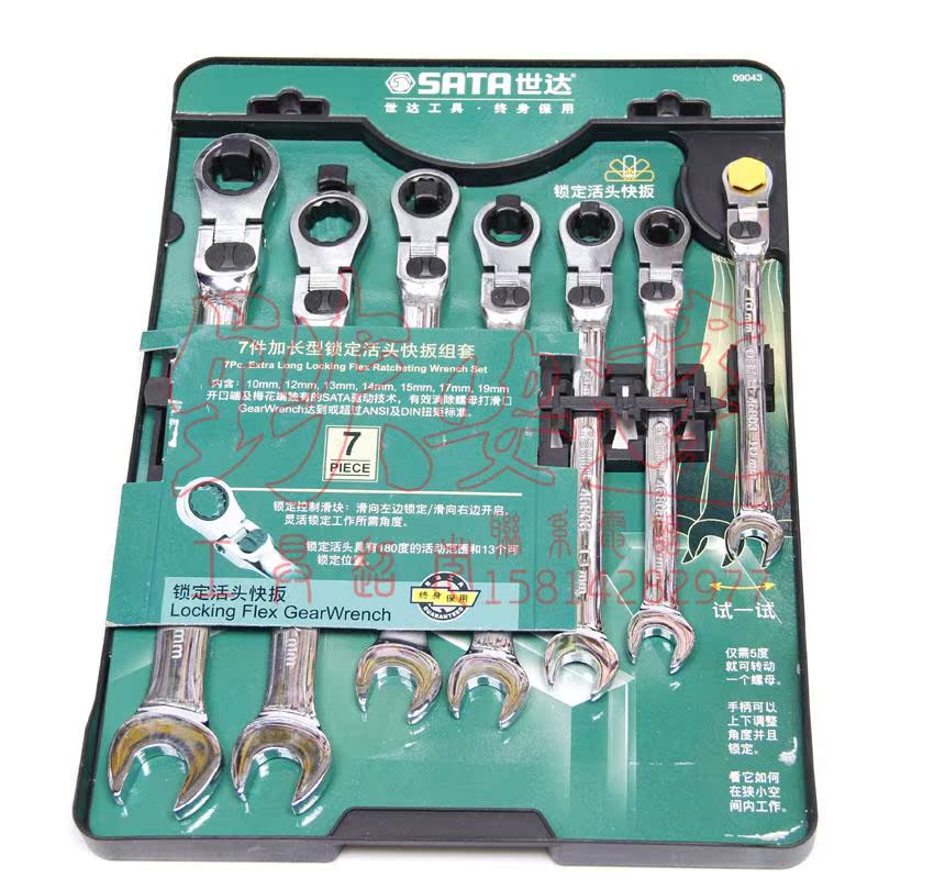 Sata Shida 7-piece set lengthened locking live head quick wrench set live head quick wrench 09043