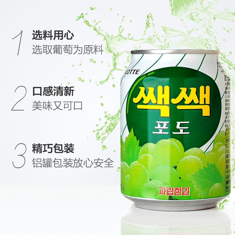 (Import) Korean drink Juice Summer drink Summer Lotte Grape juice pulp 238ml*12 listen