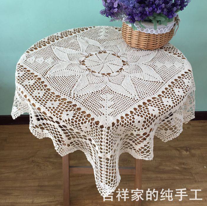 Foreign Trade Handmade Hook Flower Table Cloth Pure Cotton Woven Hollowed-out Retro Decorated Universal cover towel shooting props 90cm meters