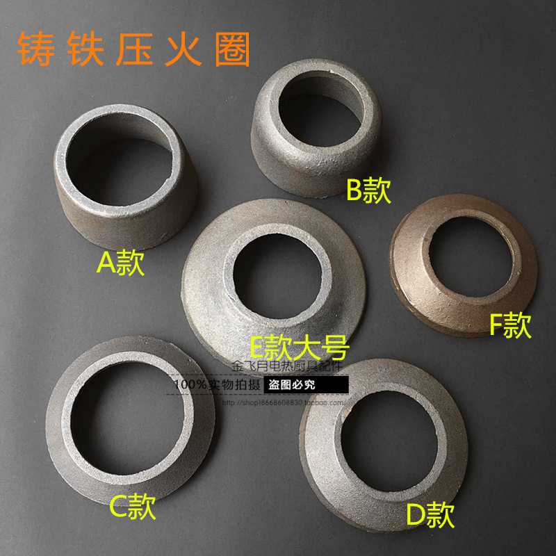 A special thick cast iron press ring B special thick cast iron press ring C Thickened Cast Iron Press Fire Circle D Subsection Thickened Cast Iron Press Fire Circle E Big Cast Iron Press Fire Circle F Common Cast Iron Press Fire Circle F