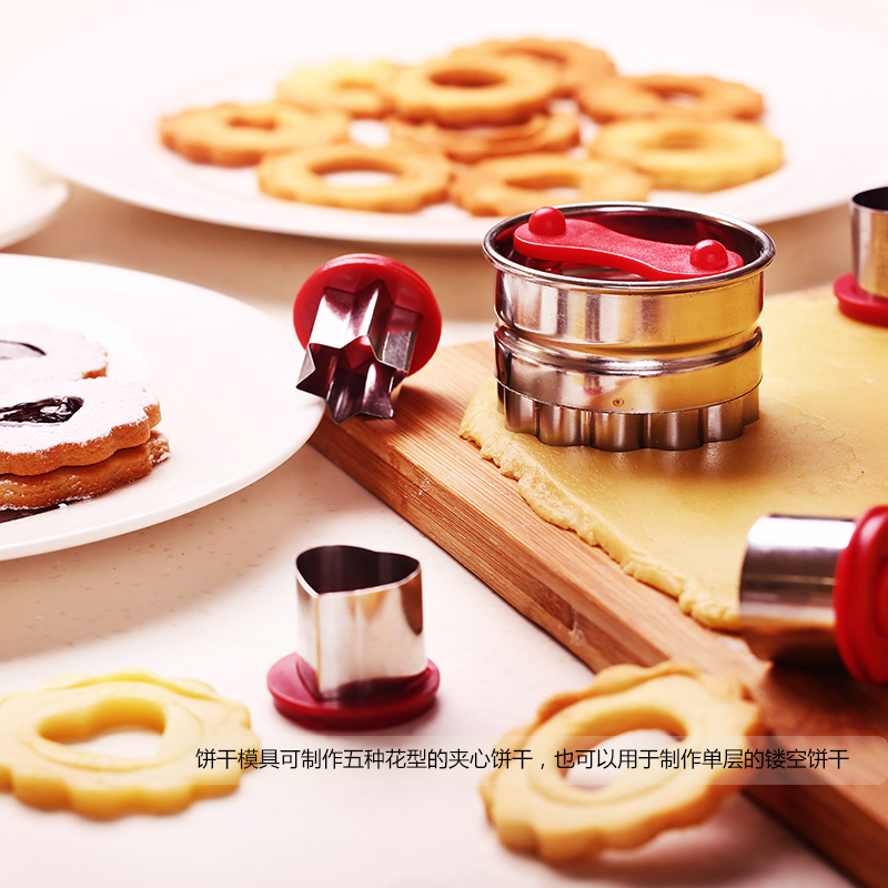 Real Body Shop Exhibition Art Sandwich Cookie Die Sandwich Biscuit Mold Hollowed-out Hollow Biscuit Tart model 6 pieces