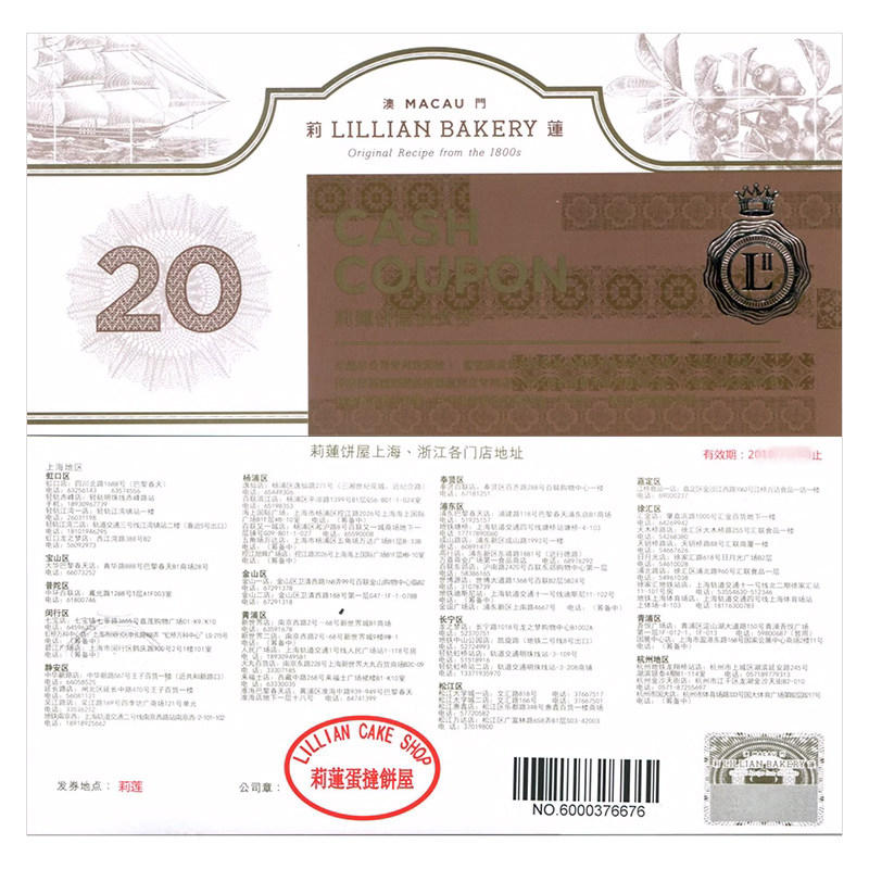 Lilian egg tart cash coupon 20 denomination birthday cake bread coupon delivery coupon for Shanghai use over 500