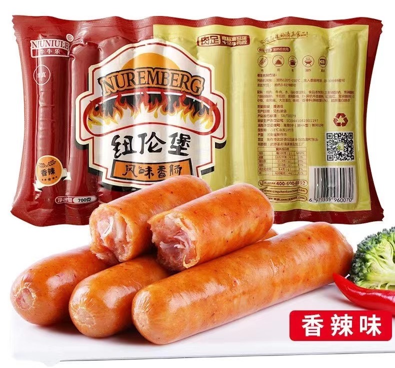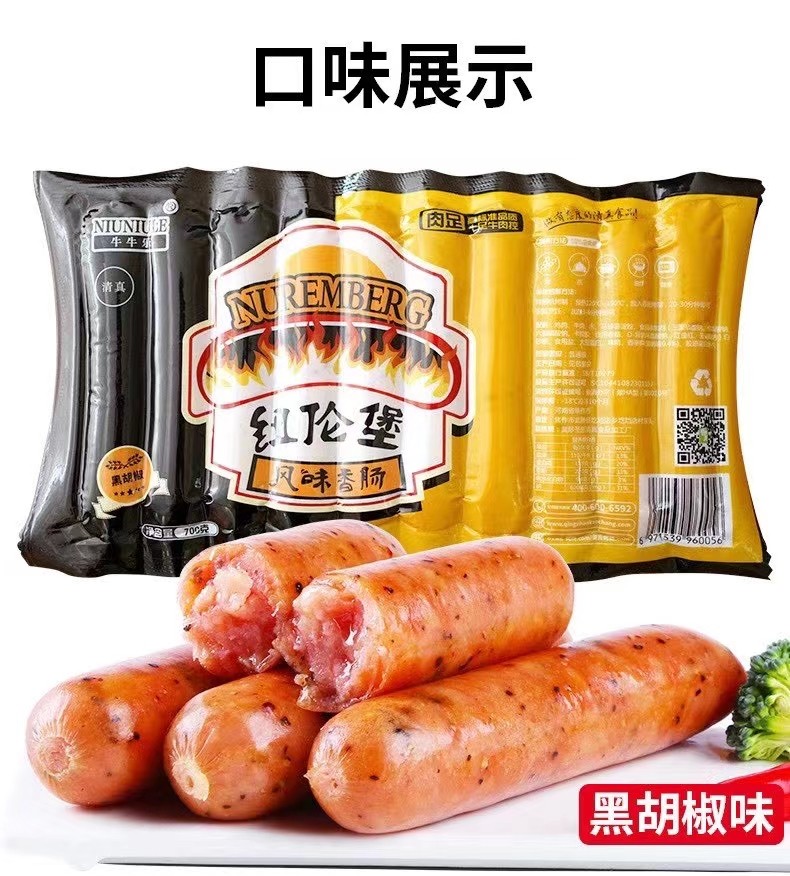 Halal pure meat sausage sausage Nuremberg flavor sausage Niu Niu Le volcanic stone black pepper grilled sausage 70g*10