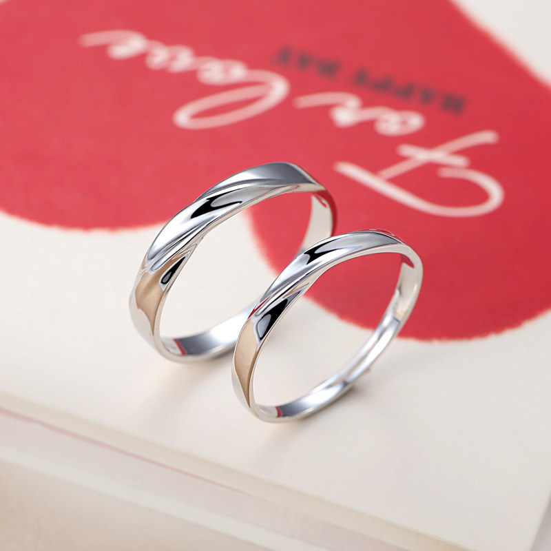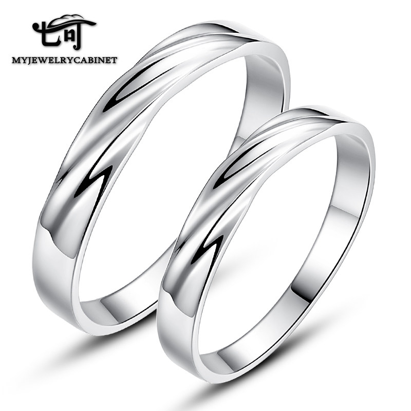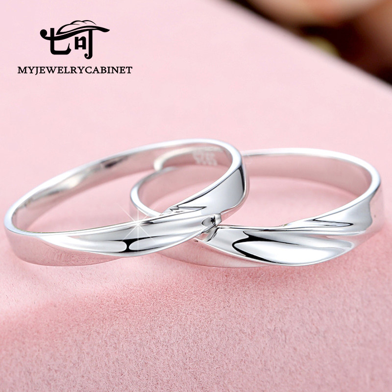 Seven can open couple ring female free lettering 925 silver pair ring male ring Korean version simple pair of live mouth ring
