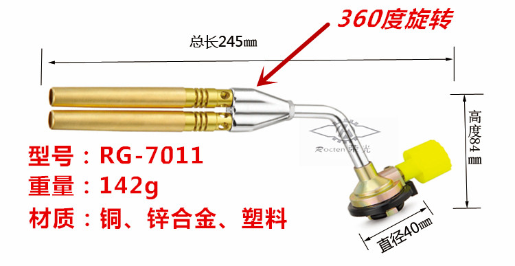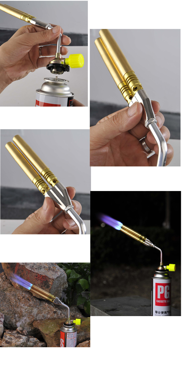 Welding gun spray gun butane gas spray gun double head pure copper card flame breath gun welded air conditioning refrigerator tube can be rotated