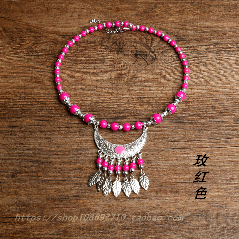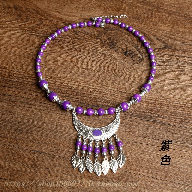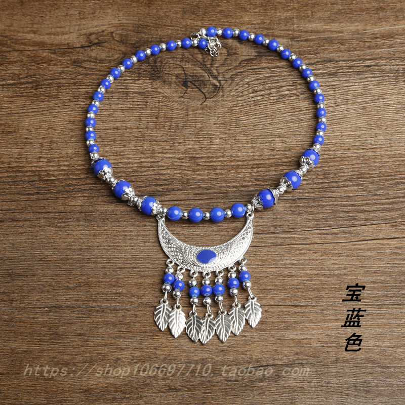 Batch of Hair Silver Necklace Miao Silver Necklace Accessories Colored Beads Necklace Necklace Famous family Wind Miao Home Ornament Necklace