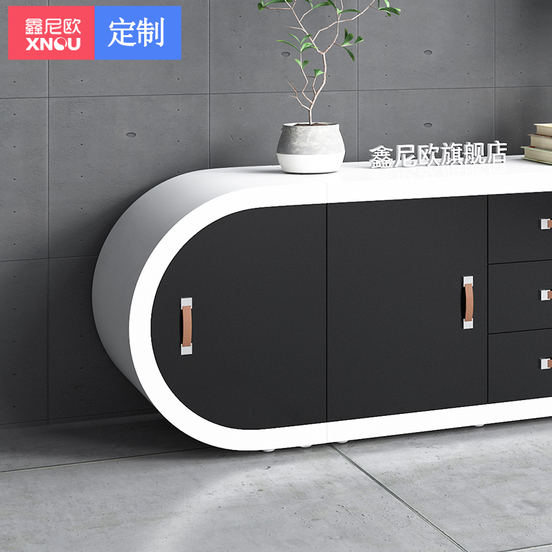Office Furnishings Furniture White Baking Lacquered Rounded Corner Cabinet Living-room Cabinet Minima Modern Fashion Short Cabinet