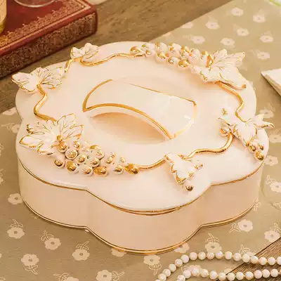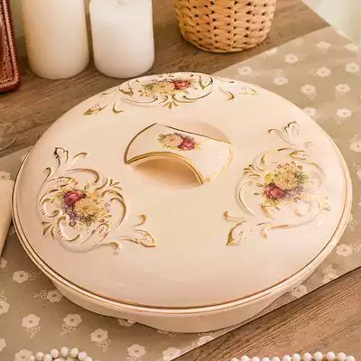 European-style ceramic creative fashion dried fruit box Dried fruit plate grid with lid multi-purpose wedding candy snack plate large fruit