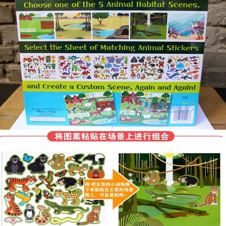American Melissa Doug children sticker book creative collage plastic static can be repeatedly glued with refrigerator sticker-Taobao
