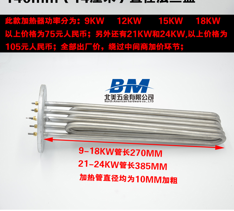 Manufacturer steaming machine heating tube steam electric boiler electric heating tube 140 flange heating tube 380V 12KW 15KW