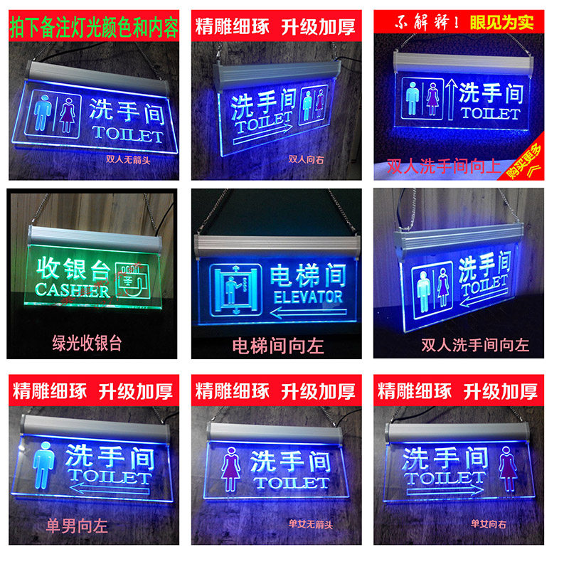 Luminous toilet signboard LED light signboard toilet powder room hanging tag Acrylic signboard