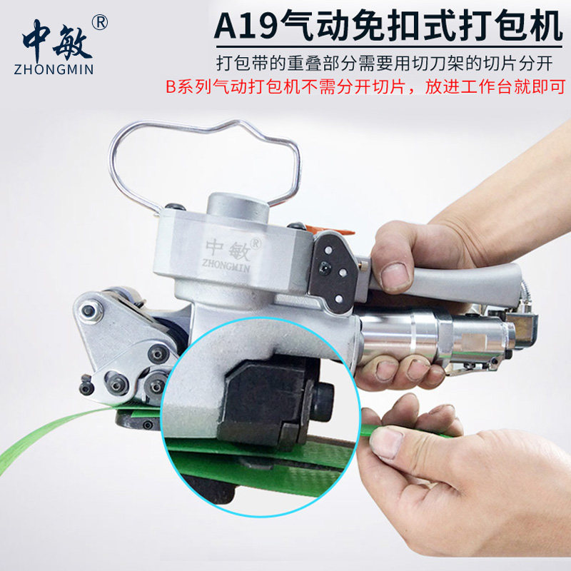 (Free ticket) Zhongmin ZM-A B19 export type pneumatic baler Portable free PET plastic steel belt hot melt strapping machine Automatic small PP belt baler Brick factory tensioner