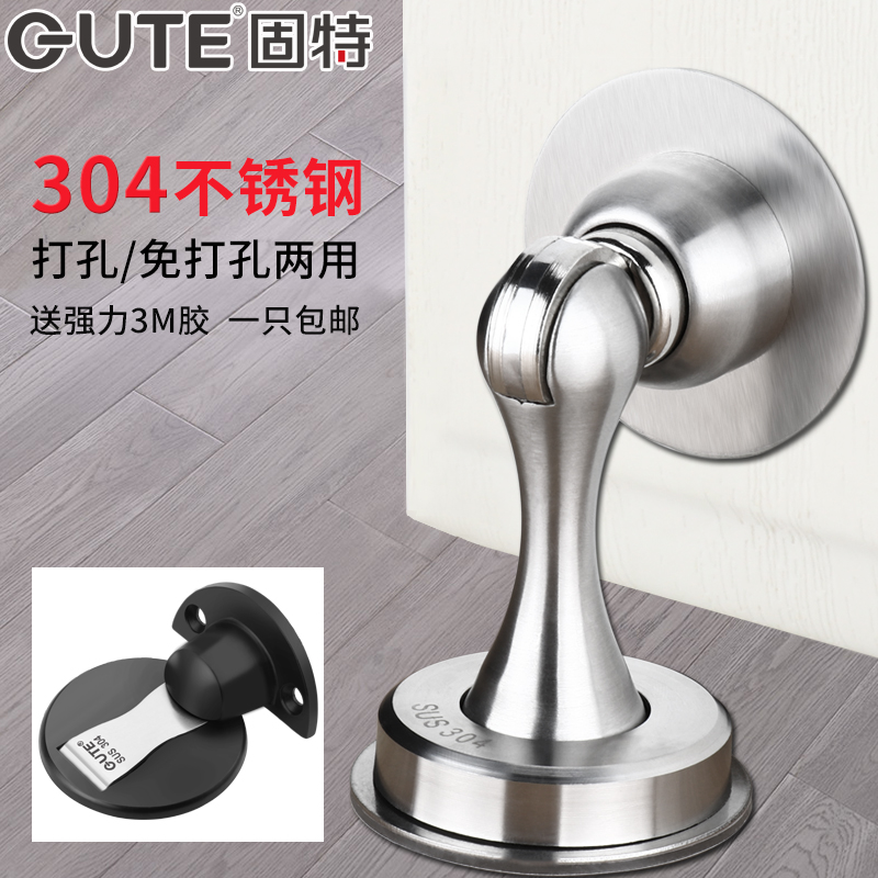 Good free perforated door suction 304 stainless steel room door floor suction powder room wall suction Strong magnetic door stopper door stopper