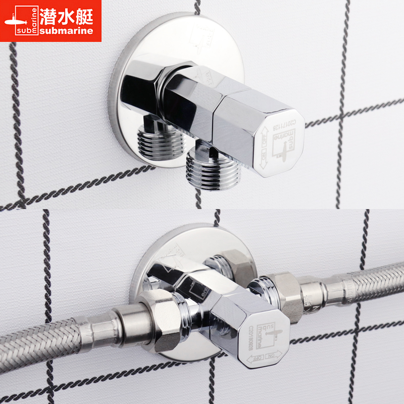 Submarine triangle valve All copper cold and hot water universal stop valve 4 points one in two out toilet faucet switch water valve