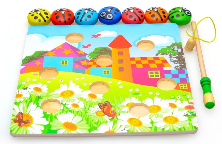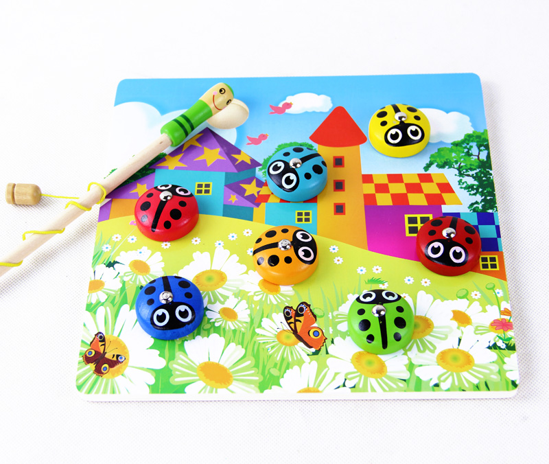 1-3-4-5 years old teaching aids wooden children's educational color toys magnetic fishing three-dimensional fishing chafer