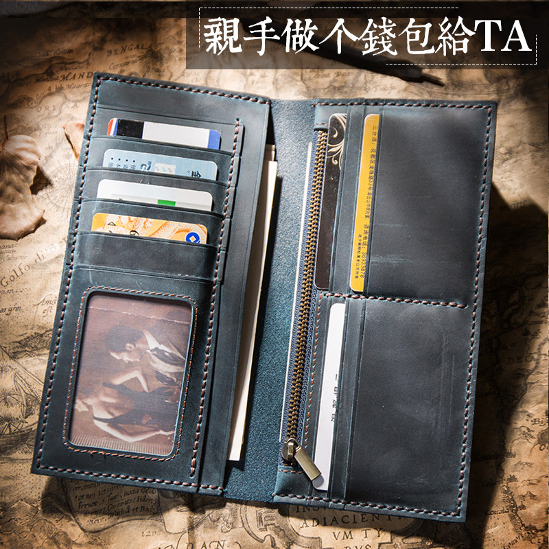 New embossed crocodile pattern (hand sewing DIY material package) - Crazy Horse dark brown (hand sewing DIY material package) - Crazy Mate Blue (hand sewing DIY material package) - Crazy Horse coffee color (hand sewing DIY material package)
