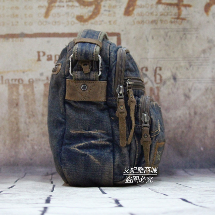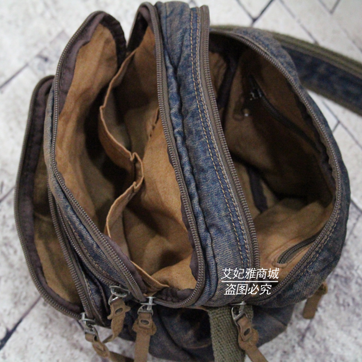 New retro denim bag men's and women's backpack wild casual Korean version business messenger shoulder bag multi-pocket horizontal trend