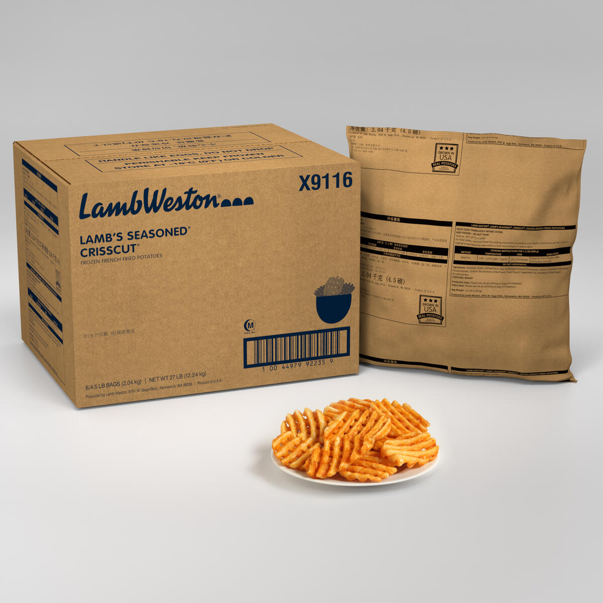 Blue Weston spicy potato grid frozen fried fries Kraft paper bag 2 04kg*6 bags imported Western food ingredients