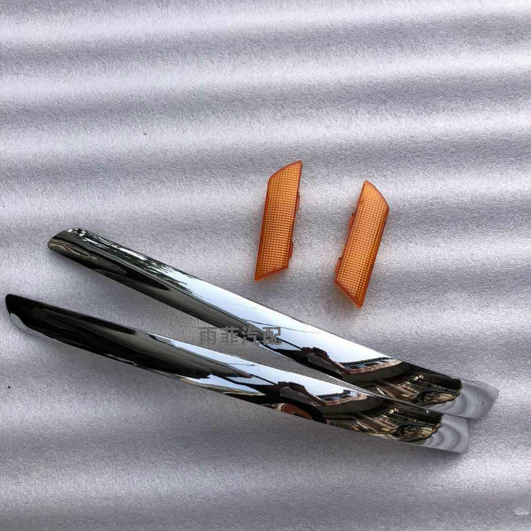 Positive driving left Plated Bright Strips Sidedrive Right Plated Bright Strips Left Plated Bright Strips Left Yellow Reflective Sheet Right Plated Bright Strips Right Yellow Reflective Sheet Pair Of Plated Bright Strips A Pair Of Yellow Glistening Pieces