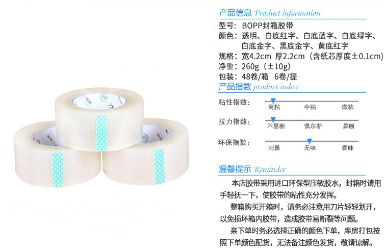 Transparent wide adhesive tape large roll waterproof seal case adhesive tape Paper delivery Package High-stick Taobao Alert Seal Rubber Wholesale