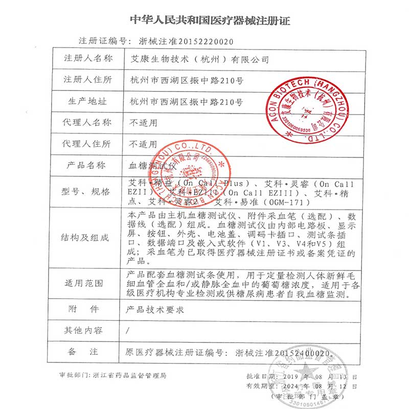 YZB Zhejiang 1370-2011 "Aike Blood Glucose Test System"
