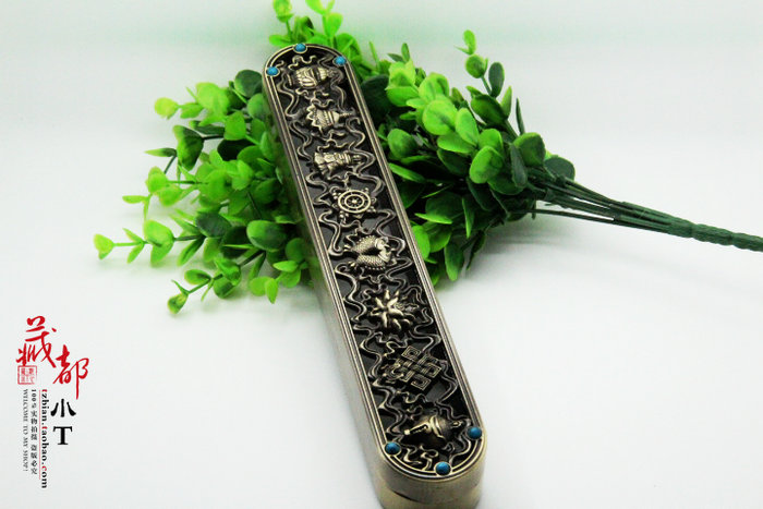 New Tibetan Chuo Auspicious Eight Precious Metal Alloy Mid flat Incense Stove Long Incense Stove Wire Incense Stove Lavender Wire Incense Box