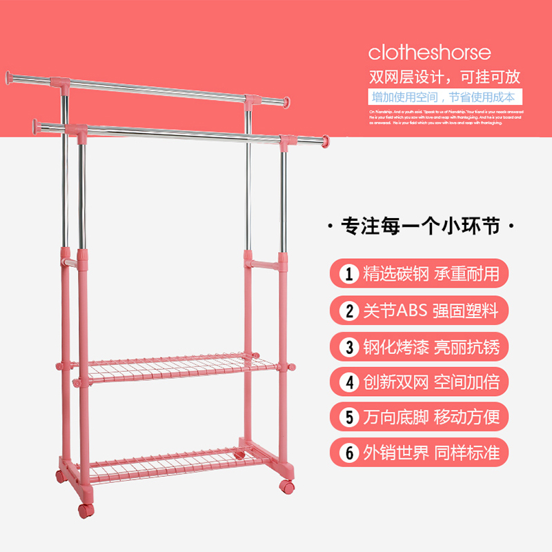 Drying rack floor-to-ceiling folding indoor and outdoor balcony double-pole cooling clothes hanger mobile simple hanging clothes pole quilt rack