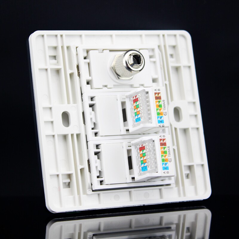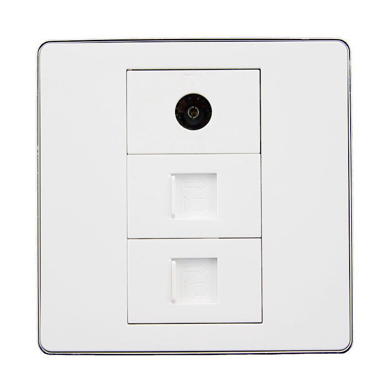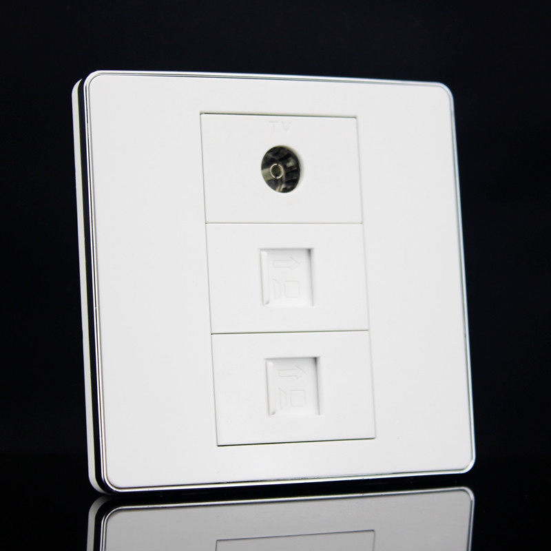 Silver edge 86 type double network TV combined socket CAT5E network route with TV wired CCTV wall insert panel