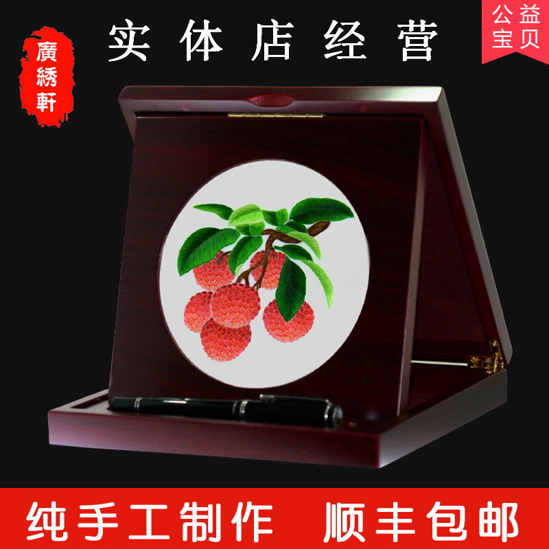 Send foreigners Guangzhou special gifts Guangfu Lingnan culture Guang embroidery Cantonese embroidery hand embroidery-red cotton Litchi pick