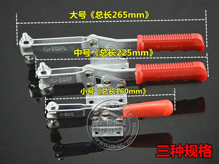 Small (clamping degree 100 kg) 1 medium (clamping degree 200 kg) 1 large (clamping degree 225 kg) 1 small (304 stainless steel) medium (304 stainless steel) large (304 stainless steel)