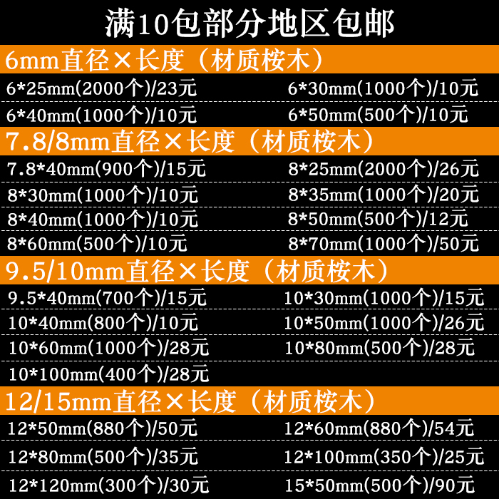 Direct sales round wood mortise wood bolt wood stick wood plug nail Bamboo shoot wood sawdust wood Shaw wood pin wood wedge wood tip 8*40