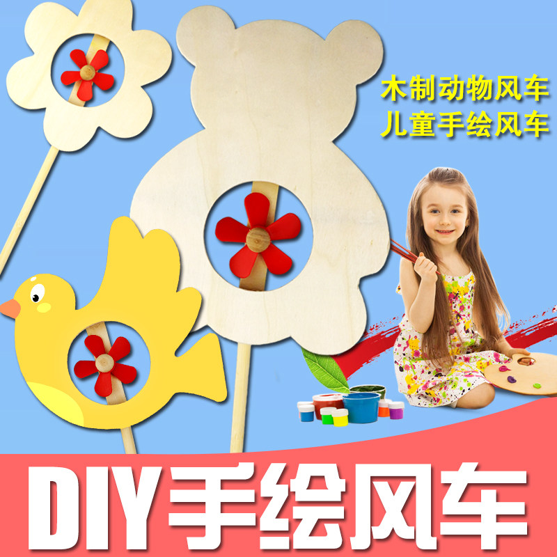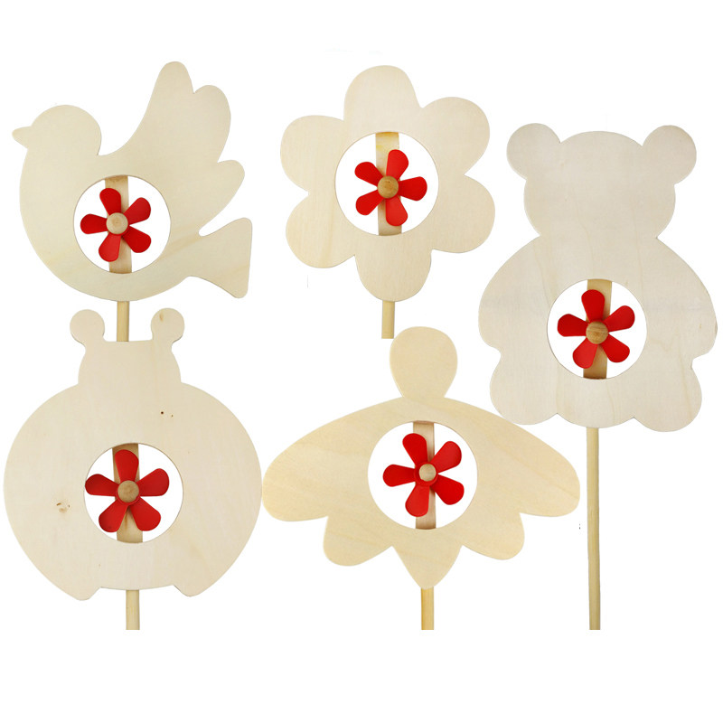Xibao Thanksgiving gift Kindergarten children wooden animals Windmill art handmade DIY painting Educational toys