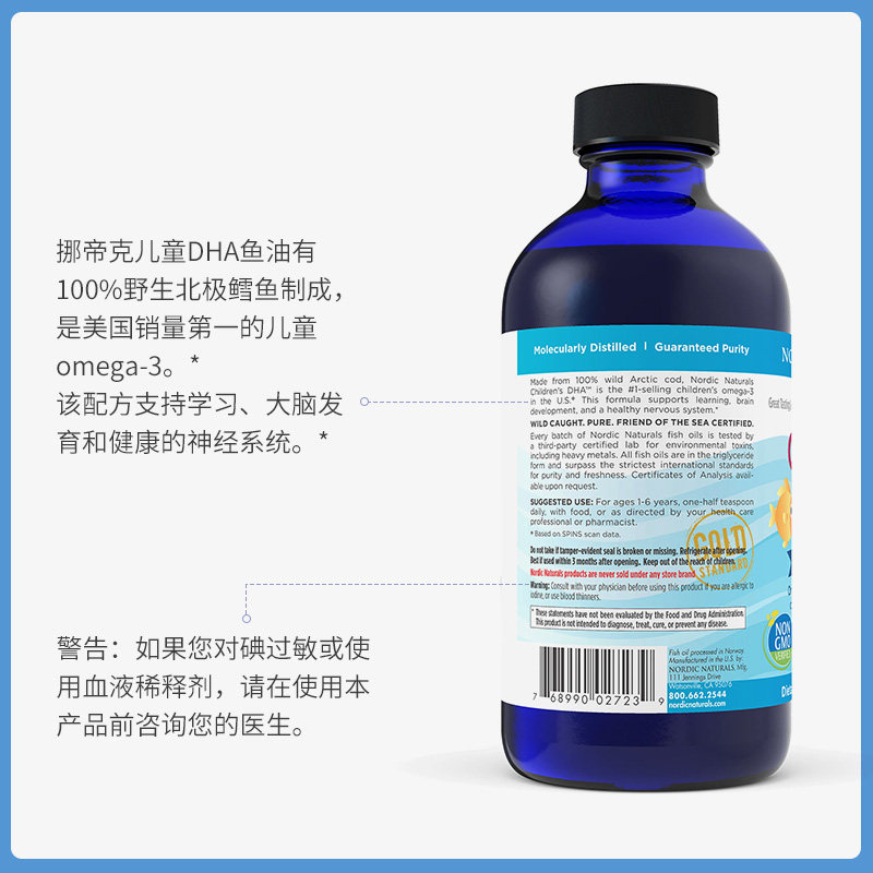 American Norwegian small fish dha children's cod liver oil non-algae oil nutrition baby gold fish oil 237ml