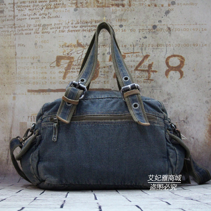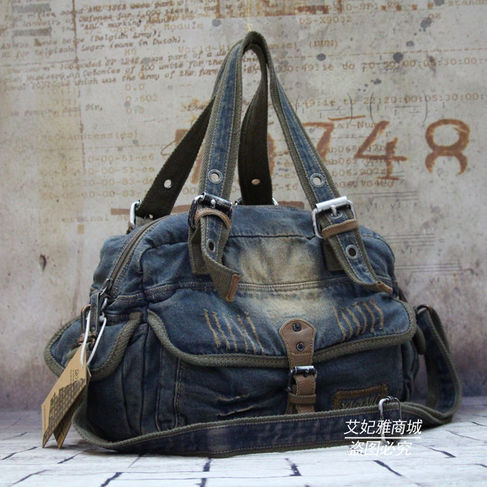2019 new women's bag retro denim bag hand bag Korean version rivet badge men's bag hand-held messenger shoulder bag tide