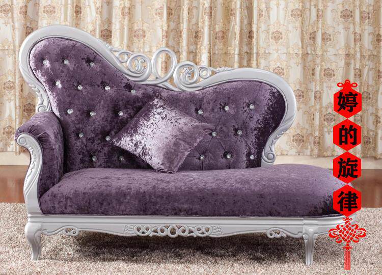 European style chaise longue solid wood carved reclining chair small apartment living room leather lazy sofa modern bedroom beauty couch