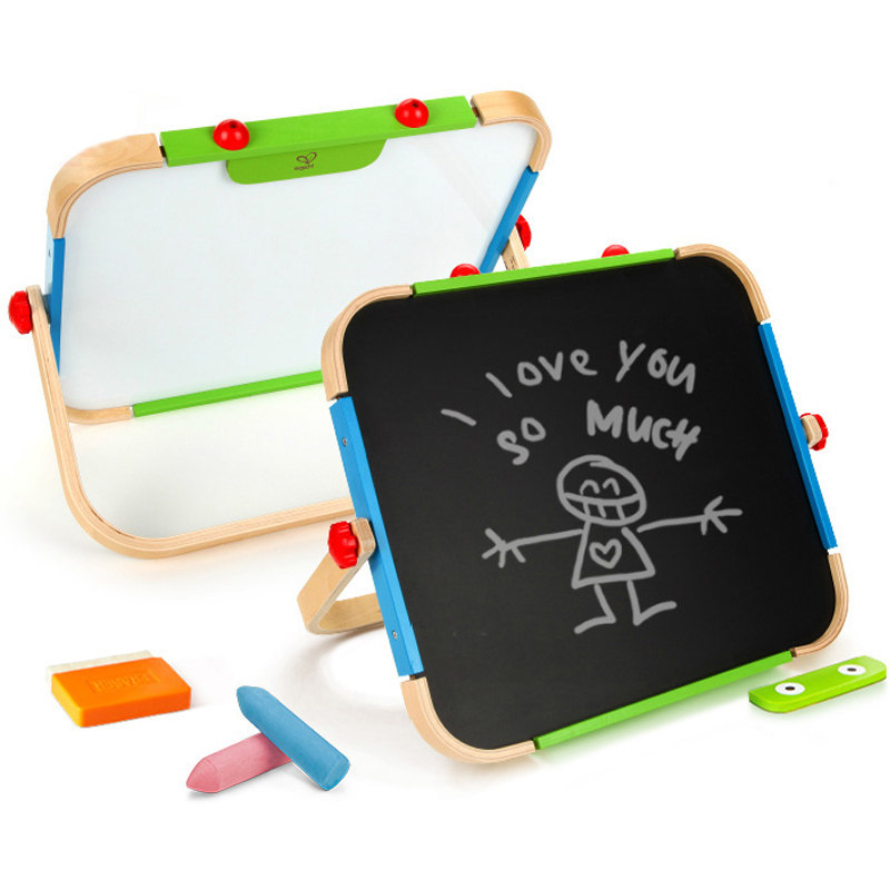 Hape drawing board Children's magnetic baby early education writing board Portable bracket type multi-functional double-sided wooden doodle board