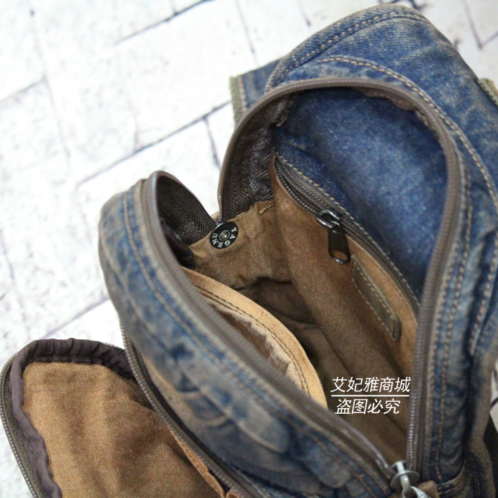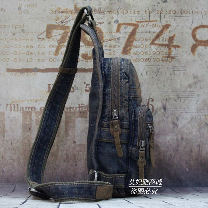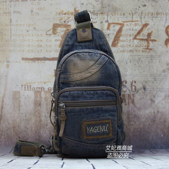 2019 new men's denim chest bag women's retro backpack Korean version fashion all-match casual business sports cross-body bag tide