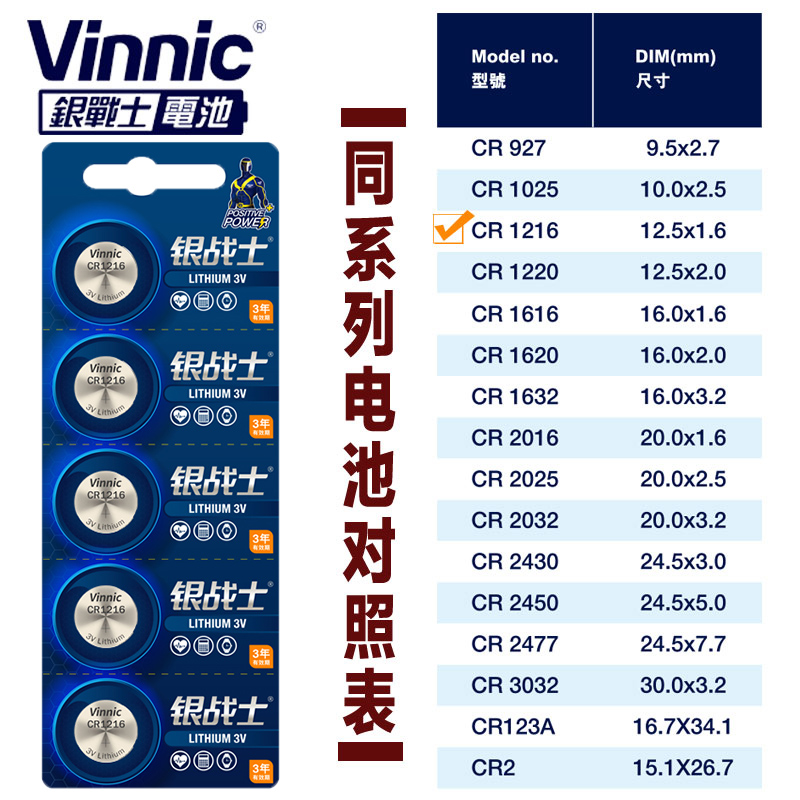 CR1216 (diameter 12.5mm thickness 1.6mm)3V (5 granules)