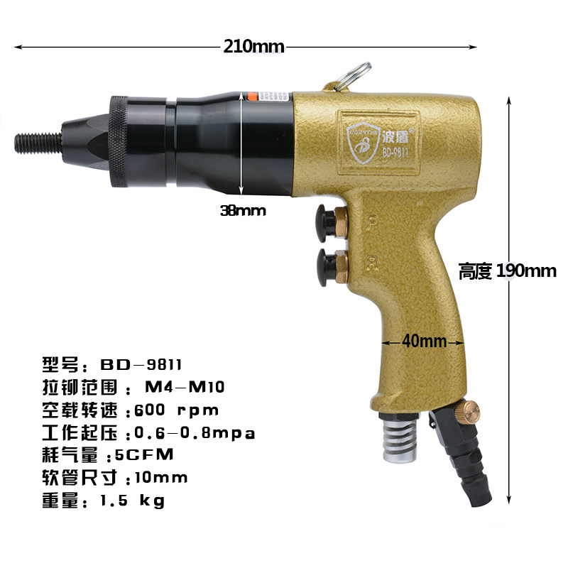 Batun Pneumatic riveting nut gun Wind pull tumble nut rifle nut gun Nut gun BD-9811