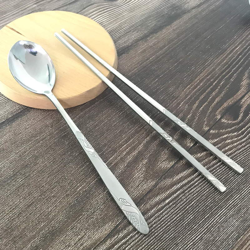 Korean stainless steel solid household spoon flat chopsticks tableware stone pot mixed restaurant restaurant household